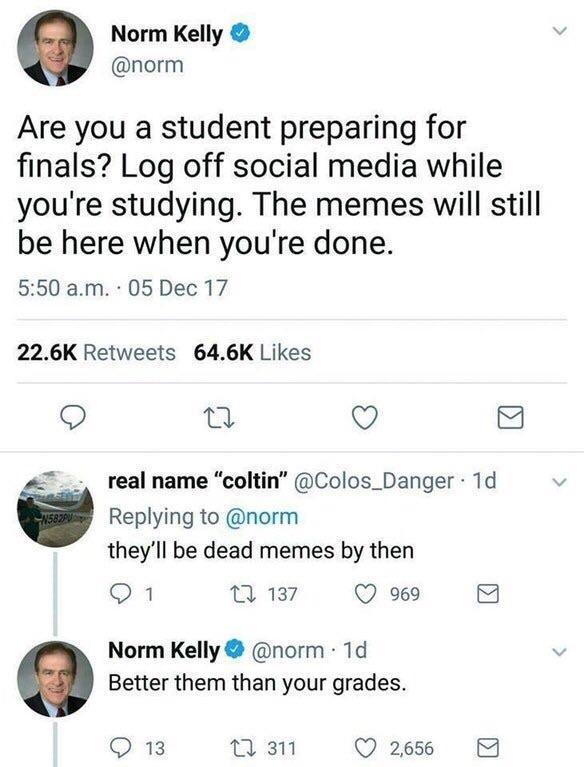 gjallarhornallewerk Uncategorized December 9, 2017December 5, 2018 1 Minute positive-memes: Norm cares about your grades Share this: Share on X (Opens in new window) X Share on Facebook (Opens in new window) Facebook Like Loading... Related Published by gjallarhornallewerk View all posts by gjallarhornallewerk Published December 9, 2017December 5, 2018