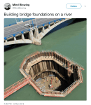 this is whats called a ‘coffer dam’, you basically build some walls, drop them in the water, tie them together, and then pump out the water from your new hole in the water so you can build while staying dry