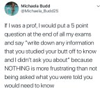 and from a teacher’s perspective, it would also be helpful to have this info from the students, because sometimes the teacher thinks “these 5 things are the most important things for my students to master,” but if the students don’t get that message from the way the teacher is teaching, the teacher needs to know that something needs to change. And knowing what students think is important and helpful in understanding how your students think and learn.