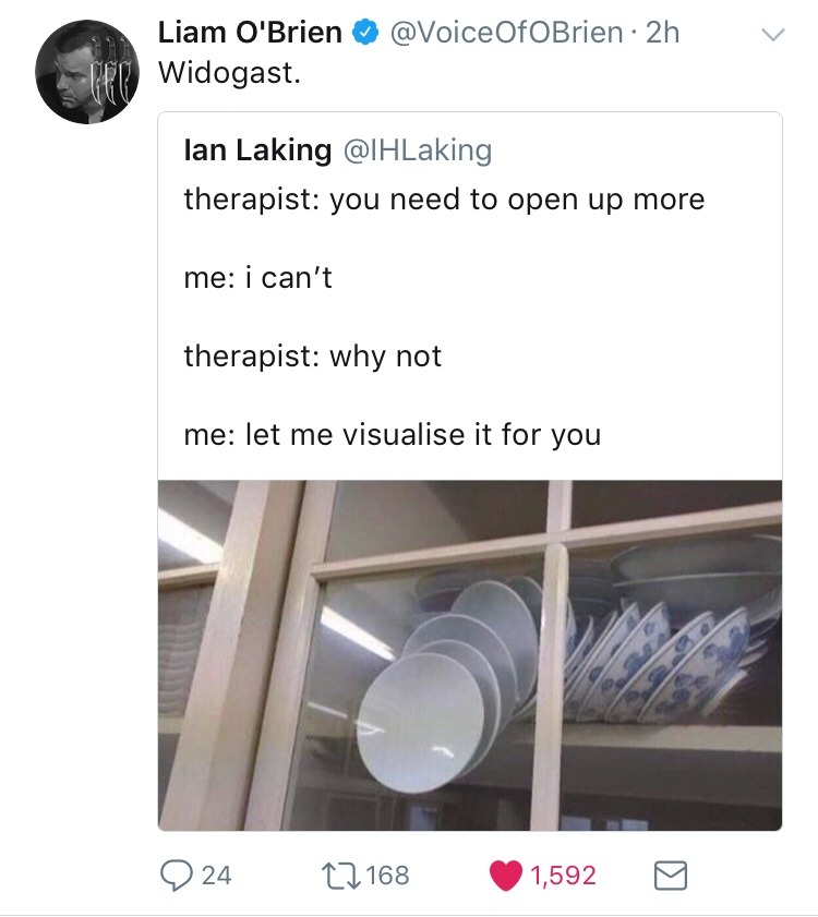 It’s a good metaphor tho, because the situation is never going to get better if you don’t eventually pull the door. And afterwards, no matter what the damage was, you’ll have a working cabinet, whatever plates you could salvage, and a place to start putting new plates.