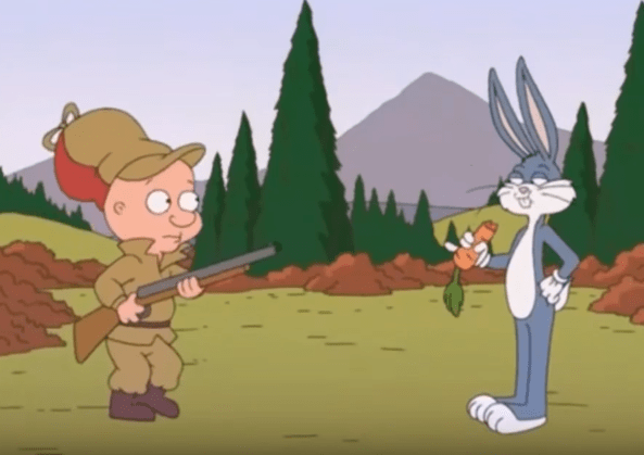 I’m gonna go out on a limb and say this scene’s punchline is that Elmer shoots his gun at Bugs and in a twist Bugs dies gruesomely from it in typical Adult Comedy Genius™