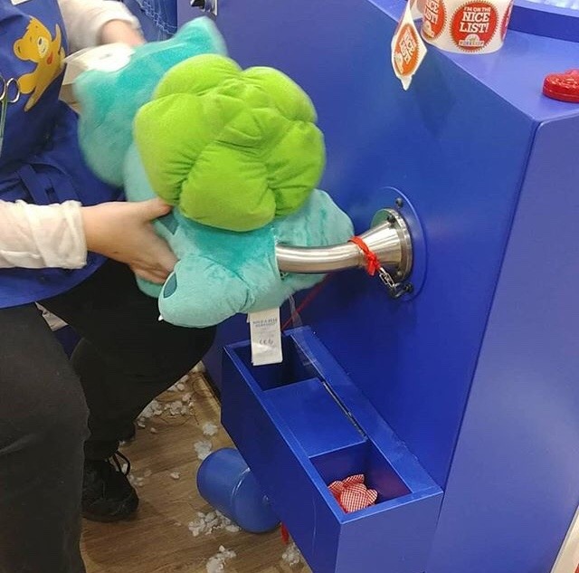 Well she was almost done stuffing him and then I noticed that you can put scents in your bear and fucking love cotton candy and the girl basically car salesmen style sold me on the scent pad and asked where I wanted the scent to go